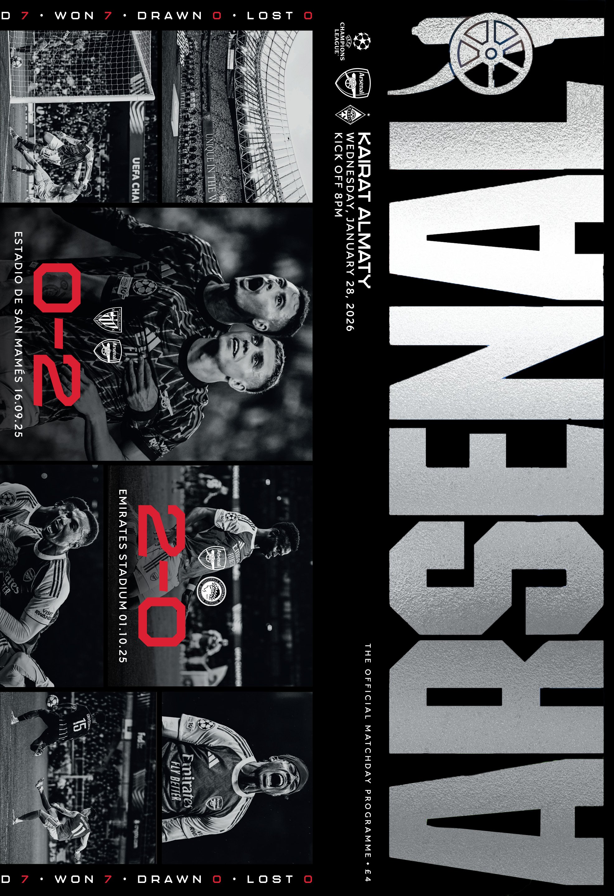 ARSENAL V KAIRAT PROGRAMME ONLY